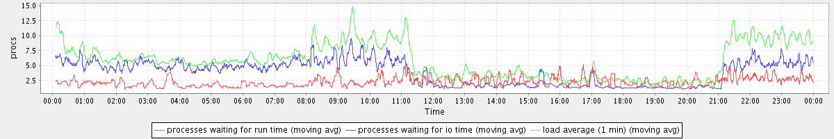 avg(processes waiting for run time) = 1.54 avg(processes waiting for io time) = 3.54 avg(load average (1 min)) = 5.77