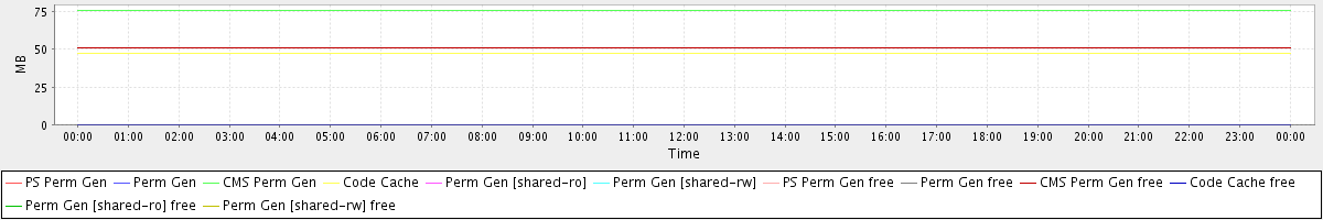 avg(PS Perm Gen) = 0.00 avg(Perm Gen) = 0.00 avg(CMS Perm Gen) = 75.91 avg(Code Cache) = 47.44 avg(Perm Gen [shared-ro]) = 0.00 avg(Perm Gen [shared-rw]) = 0.00 avg(PS Perm Gen free) = 0.00 avg(Perm Gen free) = 0.00 avg(CMS Perm Gen free) = 51.04 avg(Code Cache free) = 0.19 avg(Perm Gen [shared-ro] free) = 0.00 avg(Perm Gen [shared-rw] free) = 0.00