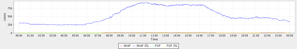 Host zm04.stanford.edu: Mailboxd: Active Connections by Client Protocol