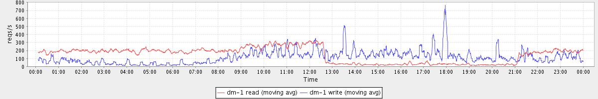 avg(dm-0 read) = 735.26 avg(dm-0 write) = 1120.80