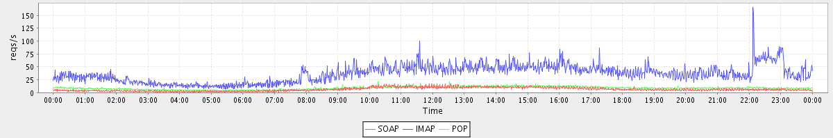 Host zm03.stanford.edu: Mailboxd: Request Rate by Client Protocol