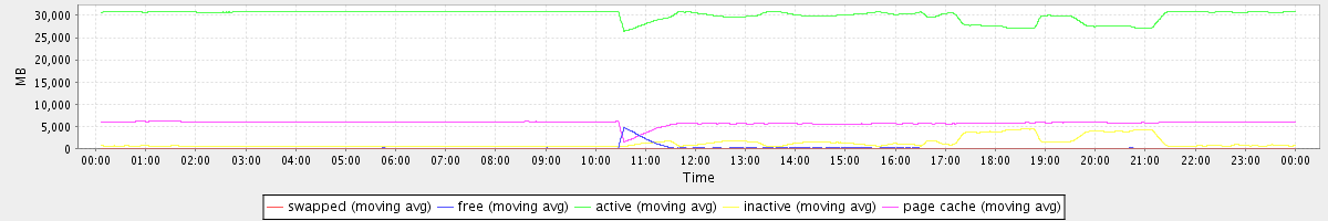 avg(swapped) = 0.22 avg(free) = 173.89 avg(active) = 30095.52 avg(inactive) = 1189.80 avg(page cache) = 5753.94