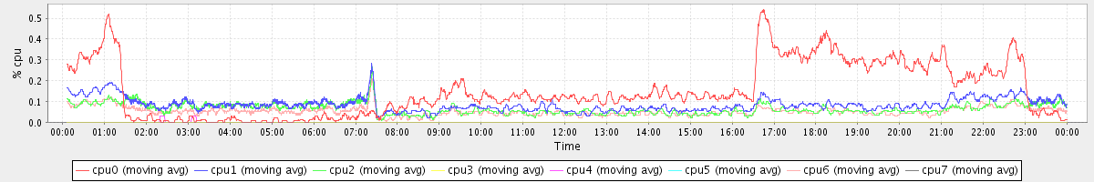 avg(cpu0) = 1.49 avg(cpu1) = 0.39 avg(cpu2) = 0.35 avg(cpu3) = 0.22 avg(cpu4) = 0.17 avg(cpu5) = 0.19 avg(cpu6) = 0.31 avg(cpu7) = 0.21