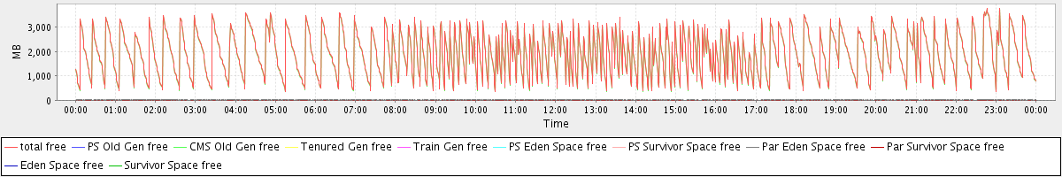 avg(total free) = 1909.95 avg(PS Old Gen free) = 0.00 avg(CMS Old Gen free) = 1888.63 avg(Tenured Gen free) = 0.00 avg(Train Gen free) = 0.00 avg(PS Eden Space free) = 0.00 avg(PS Survivor Space free) = 0.00 avg(Par Eden Space free) = 21.26 avg(Par Survivor Space free) = 0.06 avg(Eden Space free) = 0.00 avg(Survivor Space free) = 0.00
