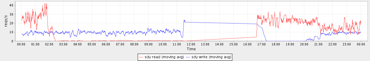 avg(sda read) = 2.22 avg(sda write) = 3.24