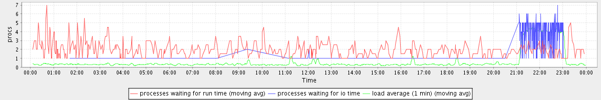 avg(processes waiting for run time) = 0.36 avg(processes waiting for io time) = 0.31 avg(load average (1 min)) = 0.63