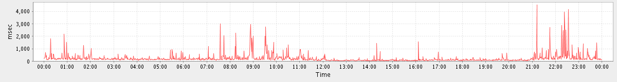 avg(SyncGalRequest) = 401.10 avg(BackupQueryRequest) = 1155.60 avg(BrowseRequest) = 373.50 avg(CreateAppointmentExceptionRequest) = 1989.00 avg(GetQuotaUsageRequest) = 3145.00 avg(ConvActionRequest.delete) = 1484.89 avg(SendMsgRequest) = 443.46 avg(BackupRequest) = 654731.00 avg(FolderActionRequest.empty) = 22665.07 avg(SaveDraftRequest) = 378.97