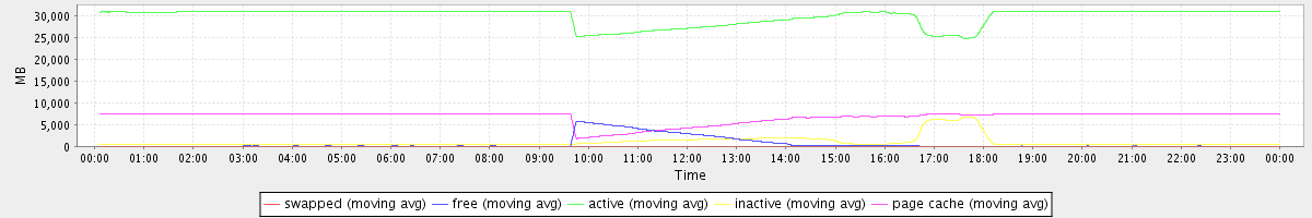 avg(swapped) = 0.23 avg(free) = 635.85 avg(active) = 29820.33 avg(inactive) = 1054.19 avg(page cache) = 6759.10