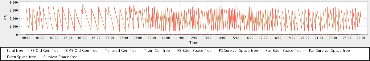 avg(total free) = 1948.01 avg(PS Old Gen free) = 0.00 avg(CMS Old Gen free) = 1927.10 avg(Tenured Gen free) = 0.00 avg(Train Gen free) = 0.00 avg(PS Eden Space free) = 0.00 avg(PS Survivor Space free) = 0.00 avg(Par Eden Space free) = 20.85 avg(Par Survivor Space free) = 0.06 avg(Eden Space free) = 0.00 avg(Survivor Space free) = 0.00