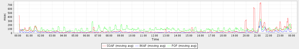 avg(IMAP) = 3.58 avg(IMAP SSL) = 736.66 avg(POP) = 0.55 avg(POP SSL) = 10.18