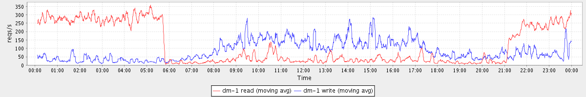 avg(dm-1 read) = 2647.41 avg(dm-1 write) = 341.91