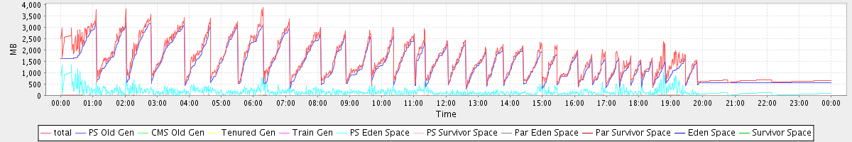 avg(total free) = 1191.89 avg(PS Old Gen free) = 1033.31 avg(CMS Old Gen free) = 0.00 avg(Tenured Gen free) = 0.00 avg(Train Gen free) = 0.00 avg(PS Eden Space free) = 157.59 avg(PS Survivor Space free) = 0.99 avg(Par Eden Space free) = 0.00 avg(Par Survivor Space free) = 0.00 avg(Eden Space free) = 0.00 avg(Survivor Space free) = 0.00