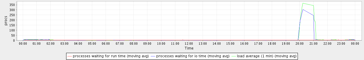 avg(processes waiting for run time) = 1.21 avg(processes waiting for io time) = 4.15 avg(load average (1 min)) = 6.33
