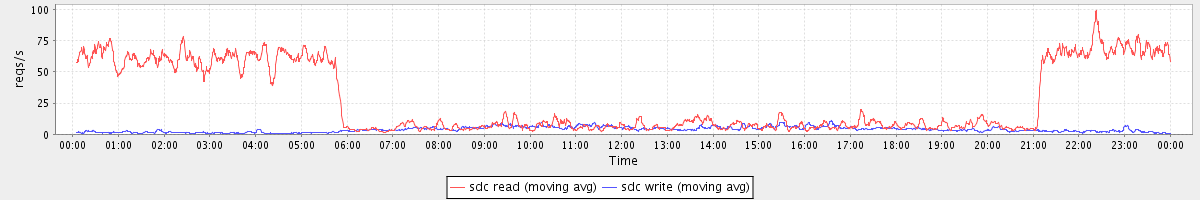 avg(sda1 read) = 23.14 avg(sda1 write) = 42.87