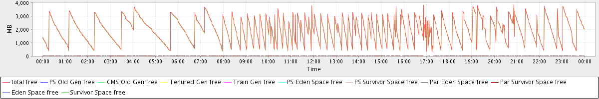 avg(total free) = 1968.70 avg(PS Old Gen free) = 0.00 avg(CMS Old Gen free) = 1947.70 avg(Tenured Gen free) = 0.00 avg(Train Gen free) = 0.00 avg(PS Eden Space free) = 0.00 avg(PS Survivor Space free) = 0.00 avg(Par Eden Space free) = 20.94 avg(Par Survivor Space free) = 0.06 avg(Eden Space free) = 0.00 avg(Survivor Space free) = 0.00