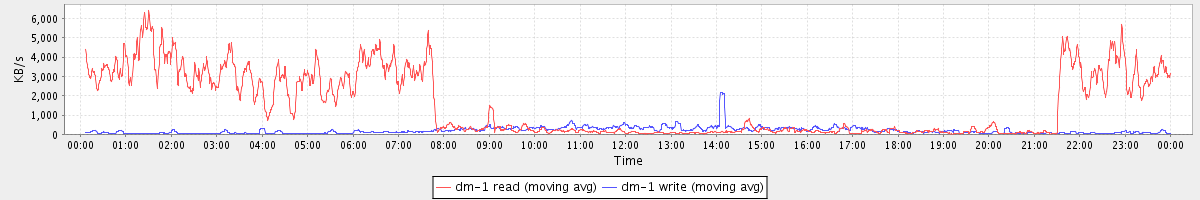 avg(dm-1 read) = 1501.63 avg(dm-1 write) = 194.53