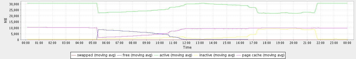 avg(swapped) = 0.22 avg(free) = 1620.39 avg(active) = 27272.78 avg(inactive) = 2561.61 avg(page cache) = 8232.83