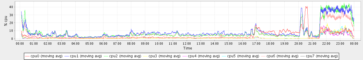 avg(cpu0) = 1.56 avg(cpu1) = 1.28 avg(cpu2) = 1.11 avg(cpu3) = 0.61 avg(cpu4) = 0.47 avg(cpu5) = 0.49 avg(cpu6) = 0.87 avg(cpu7) = 0.43