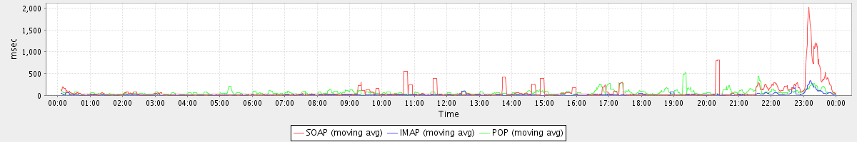 Host zm05.stanford.edu: Mailboxd: Response Time by Client Protocol