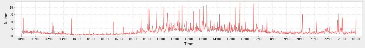 avg(user) = 11.08 avg(sys) = 1.50 avg(idle) = 79.27 avg(iowait) = 7.71 avg(nice) = 0.00 avg(irq) = 0.05 avg(softirq) = 0.38