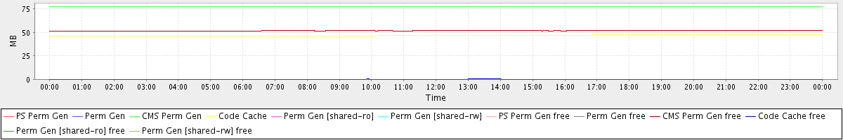 avg(PS Perm Gen) = 0.00 avg(Perm Gen) = 0.00 avg(CMS Perm Gen) = 77.30 avg(Code Cache) = 46.78 avg(Perm Gen [shared-ro]) = 0.00 avg(Perm Gen [shared-rw]) = 0.00 avg(PS Perm Gen free) = 0.00 avg(Perm Gen free) = 0.00 avg(CMS Perm Gen free) = 51.75 avg(Code Cache free) = 0.12 avg(Perm Gen [shared-ro] free) = 0.00 avg(Perm Gen [shared-rw] free) = 0.00