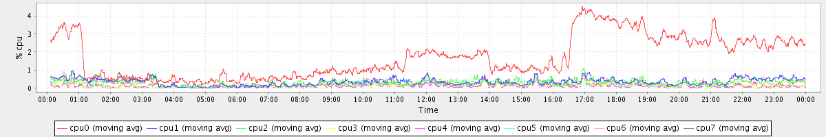 avg(cpu0) = 1.68 avg(cpu1) = 0.34 avg(cpu2) = 0.31 avg(cpu3) = 0.16 avg(cpu4) = 0.11 avg(cpu5) = 0.15 avg(cpu6) = 0.26 avg(cpu7) = 0.15