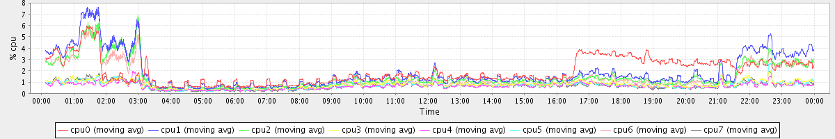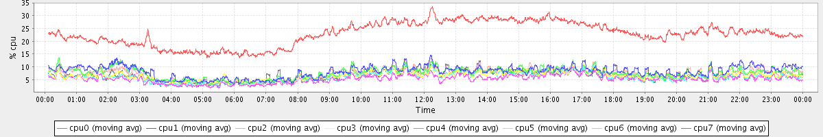 avg(cpu0) = 1.47 avg(cpu1) = 0.29 avg(cpu2) = 0.24 avg(cpu3) = 0.09 avg(cpu4) = 0.07 avg(cpu5) = 0.08 avg(cpu6) = 0.20 avg(cpu7) = 0.08