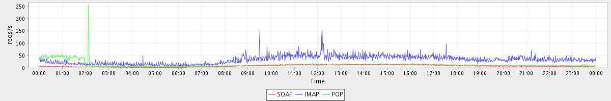 Host zm06.stanford.edu: Mailboxd: Request Rate by Client Protocol