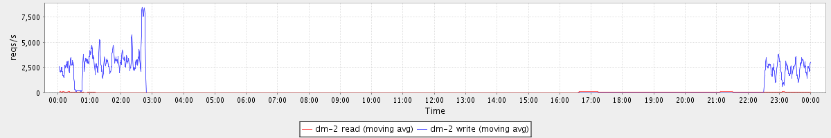 avg(dm-2 read) = 2586.79 avg(dm-2 write) = 1959.95