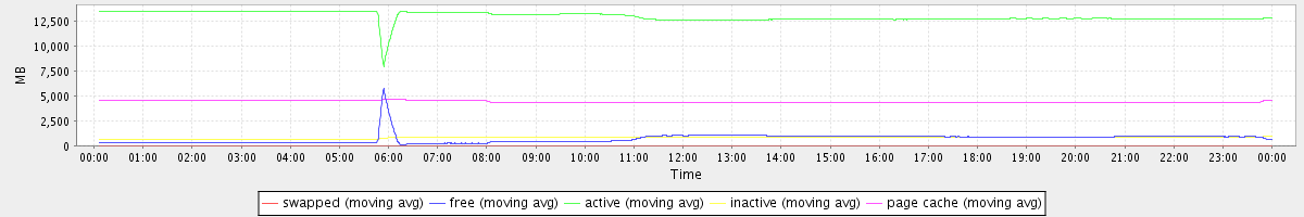 avg(swapped) = 0.22 avg(free) = 713.68 avg(active) = 12985.36 avg(inactive) = 816.56 avg(page cache) = 4422.37