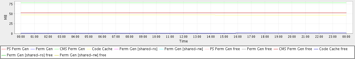 avg(PS Perm Gen) = 0.00 avg(Perm Gen) = 0.00 avg(CMS Perm Gen) = 78.12 avg(Code Cache) = 46.97 avg(Perm Gen [shared-ro]) = 0.00 avg(Perm Gen [shared-rw]) = 0.00 avg(PS Perm Gen free) = 0.00 avg(Perm Gen free) = 0.00 avg(CMS Perm Gen free) = 52.37 avg(Code Cache free) = 0.66 avg(Perm Gen [shared-ro] free) = 0.00 avg(Perm Gen [shared-rw] free) = 0.00