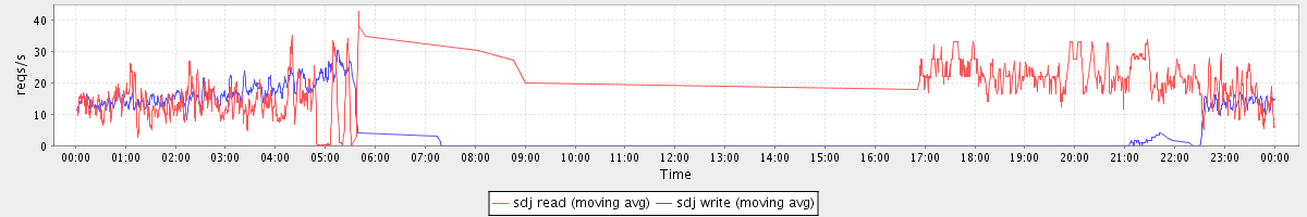 avg(sda read) = 2.12 avg(sda write) = 3.36