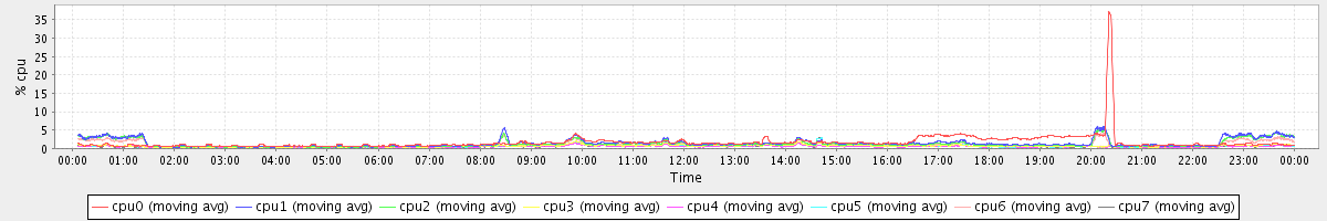 avg(cpu0) = 0.10 avg(cpu1) = 0.05 avg(cpu2) = 0.04 avg(cpu3) = 0.00 avg(cpu4) = 0.00 avg(cpu5) = 0.00 avg(cpu6) = 0.03 avg(cpu7) = 0.00