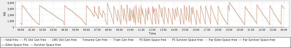 avg(total free) = 2052.16 avg(PS Old Gen free) = 0.00 avg(CMS Old Gen free) = 2030.67 avg(Tenured Gen free) = 0.00 avg(Train Gen free) = 0.00 avg(PS Eden Space free) = 0.00 avg(PS Survivor Space free) = 0.00 avg(Par Eden Space free) = 21.43 avg(Par Survivor Space free) = 0.06 avg(Eden Space free) = 0.00 avg(Survivor Space free) = 0.00