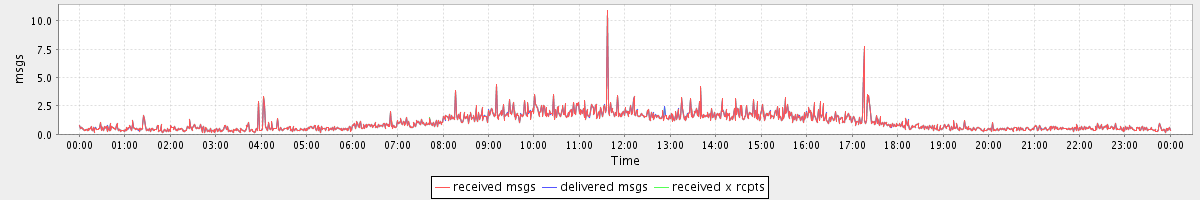 avg(received msgs) = 1.07 avg(delivered msgs) = 1.07 avg(received x rcpts) = 1.07