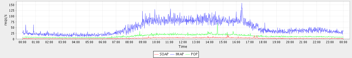Host zm09.stanford.edu: Mailboxd: Request Rate by Client Protocol