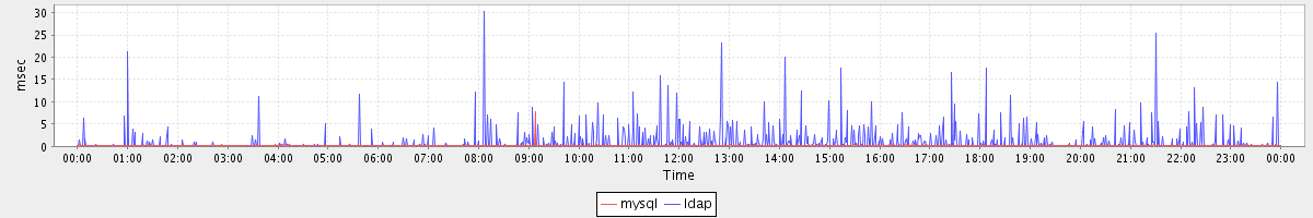 avg(mysql) = 0.19 avg(ldap) = 0.96
