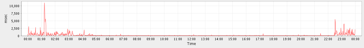 max(SearchConvRequest) = 73.00 max(MsgActionRequest.move) = 64.00 max(NoOpRequest) = 138.00 max(GetFolderRequest) = 274.00 max(SyncRequest) = 82.00 max(GetMsgRequest) = 47.00 max(CreateContactRequest) = 178.00 max(GetAppointmentRequest) = 196.00 max(SearchRequest) = 403.00 max(MsgActionRequest.delete) = 153.00