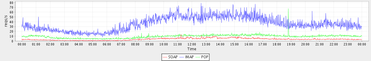 Host zm02.stanford.edu: Mailboxd: Request Rate by Client Protocol