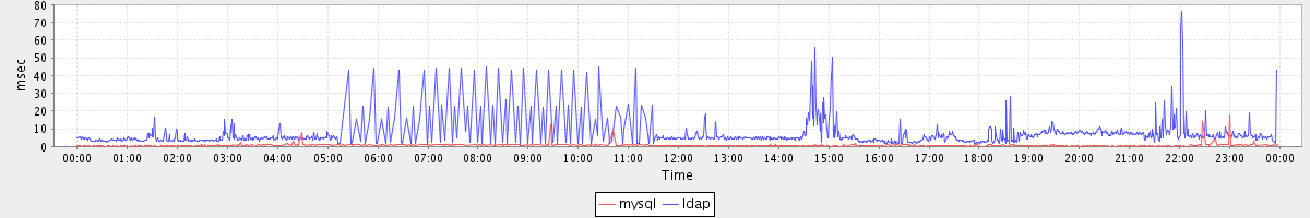 avg(mysql) = 0.35 avg(ldap) = 5.60