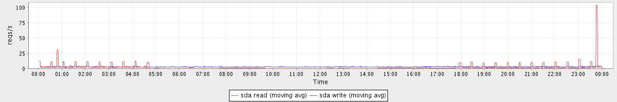 avg(sda1 read) = 20.14 avg(sda1 write) = 38.28
