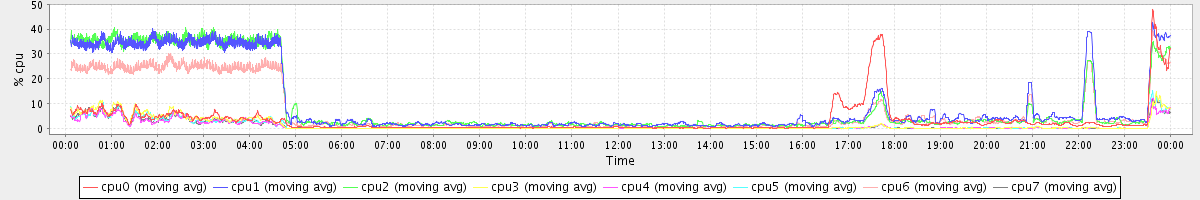 avg(cpu0) = 1.05 avg(cpu1) = 0.14 avg(cpu2) = 0.13 avg(cpu3) = 0.06 avg(cpu4) = 0.05 avg(cpu5) = 0.05 avg(cpu6) = 0.11 avg(cpu7) = 0.04