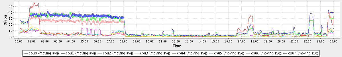 avg(cpu0) = 1.16 avg(cpu1) = 0.18 avg(cpu2) = 0.17 avg(cpu3) = 0.05 avg(cpu4) = 0.05 avg(cpu5) = 0.05 avg(cpu6) = 0.13 avg(cpu7) = 0.05