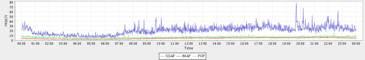 Host zm06.stanford.edu: Mailboxd: Request Rate by Client Protocol