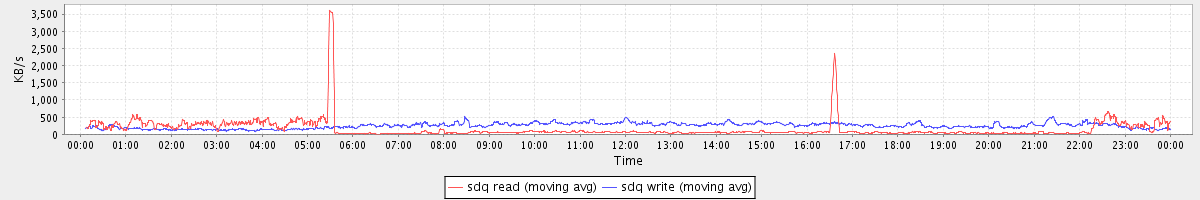 avg(sda read) = 24.54 avg(sda write) = 46.73