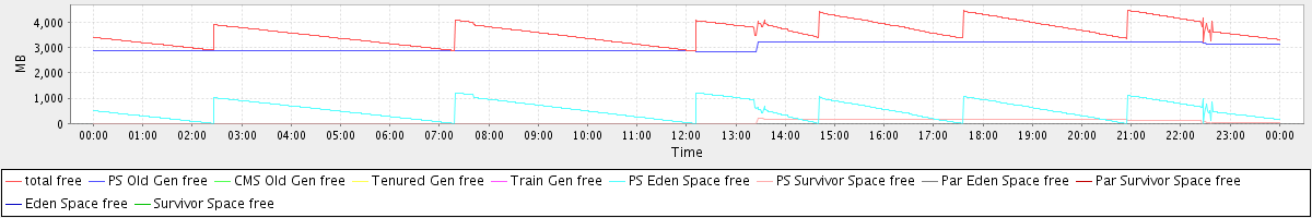 avg(total free) = 3604.05 avg(PS Old Gen free) = 3014.39 avg(CMS Old Gen free) = 0.00 avg(Tenured Gen free) = 0.00 avg(Train Gen free) = 0.00 avg(PS Eden Space free) = 528.22 avg(PS Survivor Space free) = 61.44 avg(Par Eden Space free) = 0.00 avg(Par Survivor Space free) = 0.00 avg(Eden Space free) = 0.00 avg(Survivor Space free) = 0.00