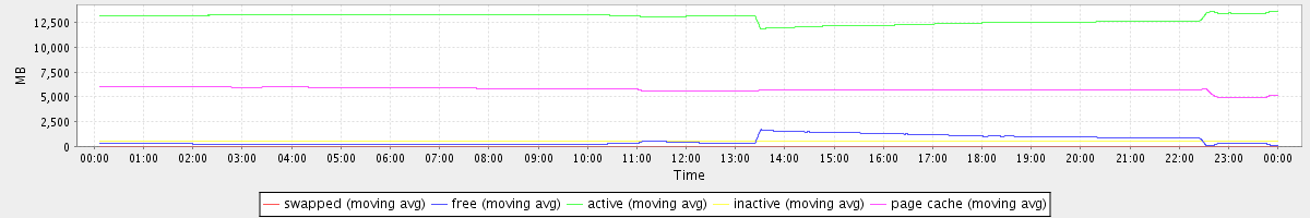 avg(swapped) = 0.23 avg(free) = 590.89 avg(active) = 12949.92 avg(inactive) = 519.03 avg(page cache) = 5761.02
