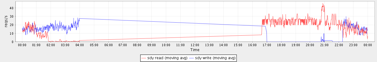 avg(sda read) = 20.78 avg(sda write) = 46.89