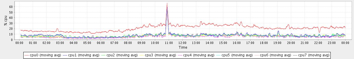 avg(cpu0) = 1.25 avg(cpu1) = 0.20 avg(cpu2) = 0.19 avg(cpu3) = 0.07 avg(cpu4) = 0.05 avg(cpu5) = 0.06 avg(cpu6) = 0.15 avg(cpu7) = 0.07