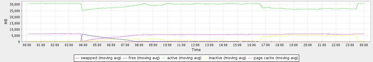 avg(swapped) = 0.23 avg(free) = 556.05 avg(active) = 28798.83 avg(inactive) = 2127.94 avg(page cache) = 5484.78